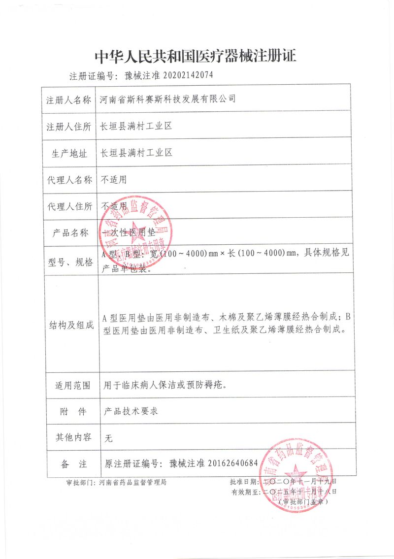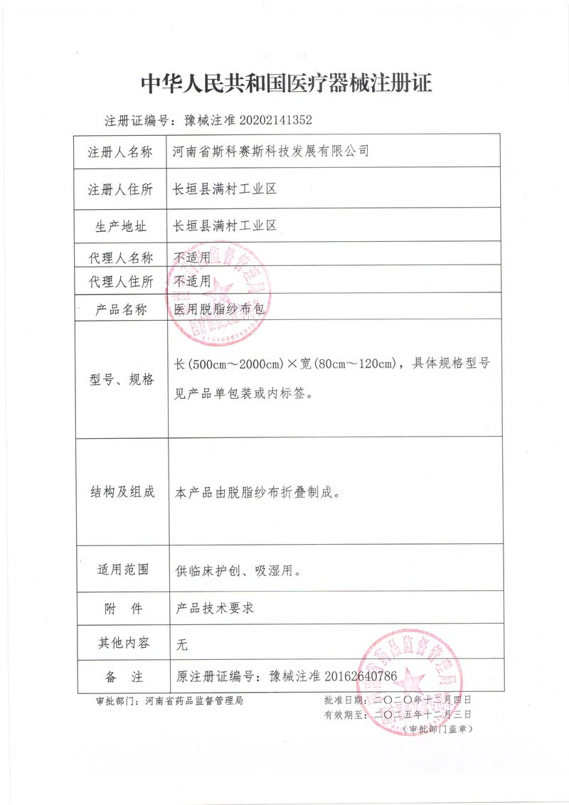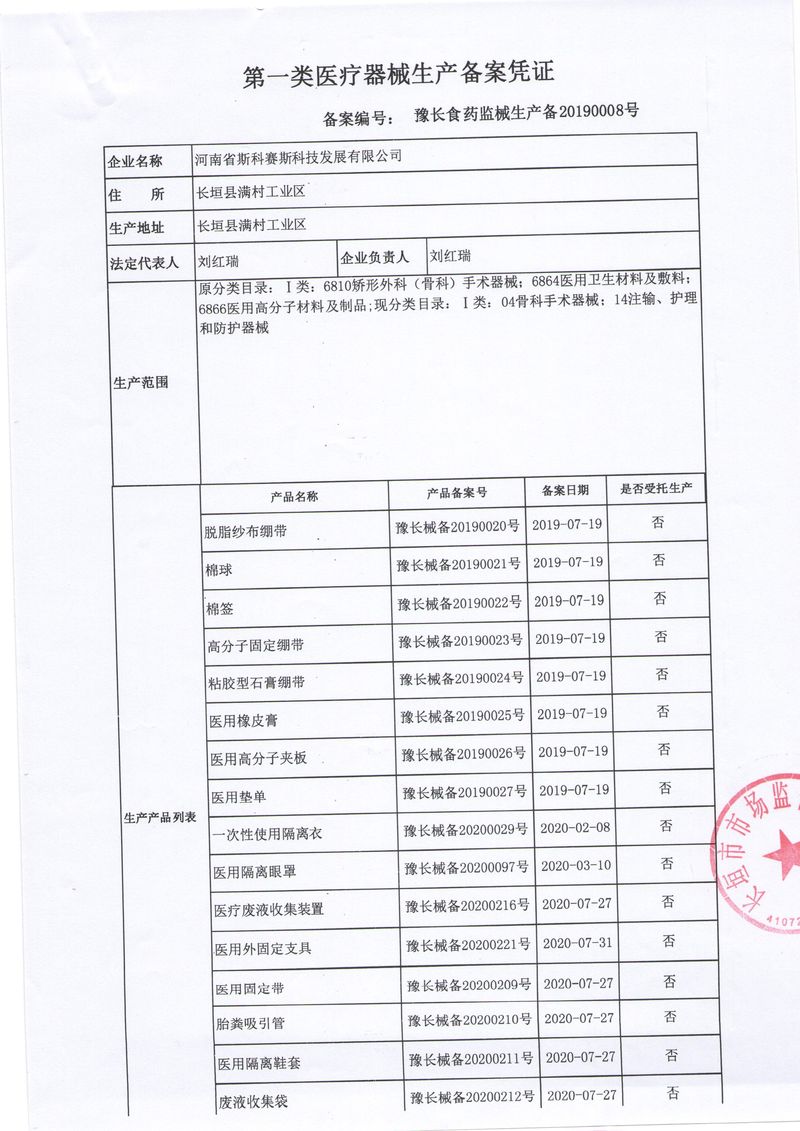 河南省斯科賽斯科技發(fā)展有限公司創(chuàng)建于 2011 年,位于“中國(guó)醫(yī)療耗材之都”- 河南省長(zhǎng)垣縣,西臨 308 省道,南靠新菏鐵路,北依長(zhǎng)濟(jì)高速,交通便捷,經(jīng)濟(jì)發(fā)達(dá),環(huán)境優(yōu)美。斯科賽斯積極進(jìn)入醫(yī)療健康和服務(wù)領(lǐng)域,秉承為用戶創(chuàng)造價(jià)值的理念,專注于醫(yī)用耗材解決方案的研發(fā)和運(yùn)營(yíng),并為用戶提供完善的產(chǎn)品解決方案;  斯科賽斯主要生產(chǎn)醫(yī)用麻醉系列、醫(yī)用高分子系列、醫(yī)用敷料包系列、醫(yī)用無(wú)紡布系列、醫(yī)用防護(hù)系列、醫(yī)用脫脂棉系列、生物材料制品類等七大類、100 多個(gè)品種、400 多個(gè)規(guī)格的產(chǎn)品。公司占地面積約 30000 平方米,建筑面積20000 平方米,擁有 10 萬(wàn)級(jí)的凈化車(chē)間總面積 10000 平方米。擁有國(guó)際先進(jìn)水平的生產(chǎn)設(shè)備和檢測(cè)儀器,技術(shù)裝備精良,檢測(cè)手段完善,為醫(yī)療行業(yè)的不斷發(fā)展進(jìn)步提供保障。公司順利通過(guò) ISO9001、ISO13485 質(zhì)量管理體系認(rèn)證。  斯科賽斯堅(jiān)持研發(fā)高科技新產(chǎn)品,力爭(zhēng)在醫(yī)療器械關(guān)鍵領(lǐng)域取得技術(shù)和研發(fā)的重大突破;立足國(guó)內(nèi)和國(guó)際兩個(gè)市場(chǎng),逐步實(shí)現(xiàn)管理理念、經(jīng)營(yíng)機(jī)制、人力資源、技術(shù)、產(chǎn)品、市場(chǎng)等全方位對(duì)接,提高企業(yè)的核心競(jìng)爭(zhēng)力;過(guò)去的歲月里,斯科賽斯砥礪前行,誠(chéng)信務(wù)實(shí),銳意進(jìn)取,不斷創(chuàng)新,用自己的睿智和辛勞,以富有責(zé)任感的使命,在探索中追求,在追求中超越,致力于成為值得信賴的醫(yī)療用品生產(chǎn)企業(yè)!在未來(lái)的日子里,斯科賽斯將一如既往豪情滿懷,信心百倍,攜手并肩,執(zhí)著追求,向更高的的目標(biāo)前進(jìn),鑄造新的輝煌!